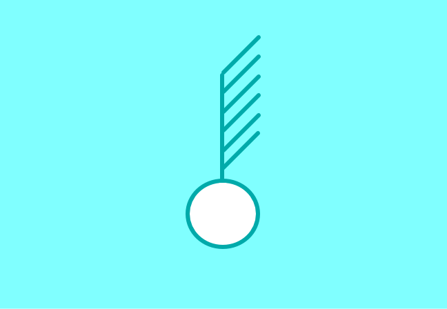 風力を記号で表すとき,まん中の天気記号のから風がふいてくる方向に向けてをひく.