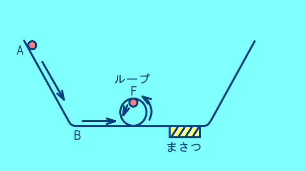 100cmの高さのA地点からボールを離すとボールはレールをたどって