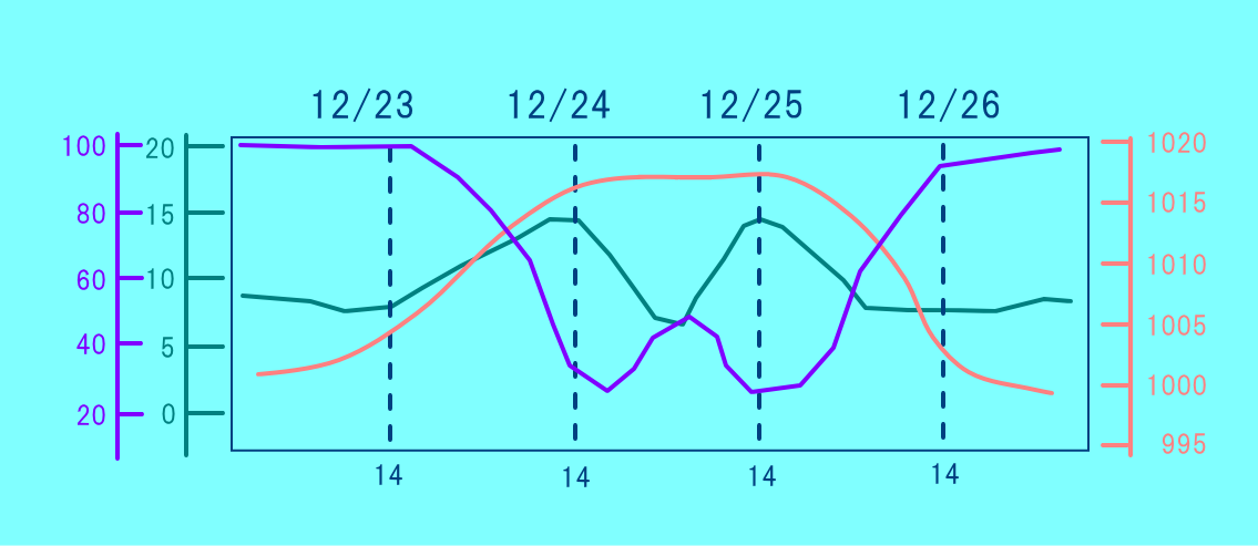 気圧は晴れの日に上がるのでのグラフは気圧を表している.