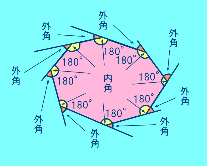 これは各頂点を°と考えて,外角の和の°を引くとも