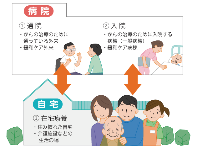 緩和ケアを受ける場は、大きく通院、入院、療養