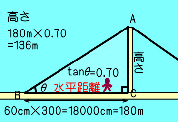 山の斜辺が分かれば,水平方向の距離が出せる.