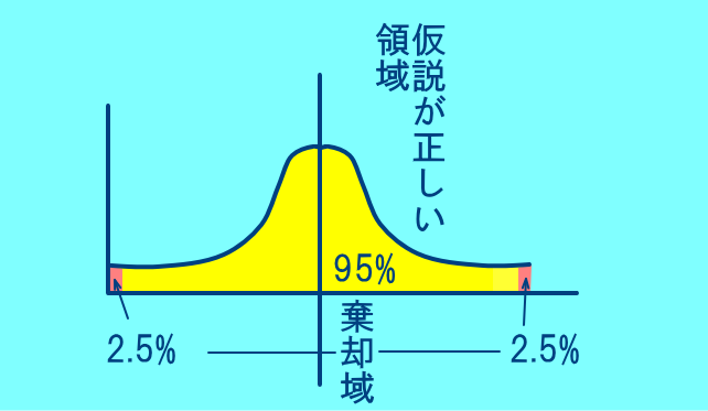 この範囲の確率は5%である.表p=裏q=0.5の確率に偏りが範囲:仮説域